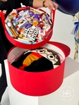 Міні-гігант це дуже крутий бокс, який має подвійне дно. Зверху солодощі (2950 грн) , а знизу товари за вашим побажанням, це може бути плед, піжама, тапочки, косметика