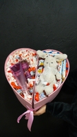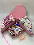 Дизайнерська коробка, мікс солодощів від кіндер, рафаело, нутела.Іграшка ручної роботи "Зайчик"набір від Viktoria's Secret (спрей та лосьйон для тіла).